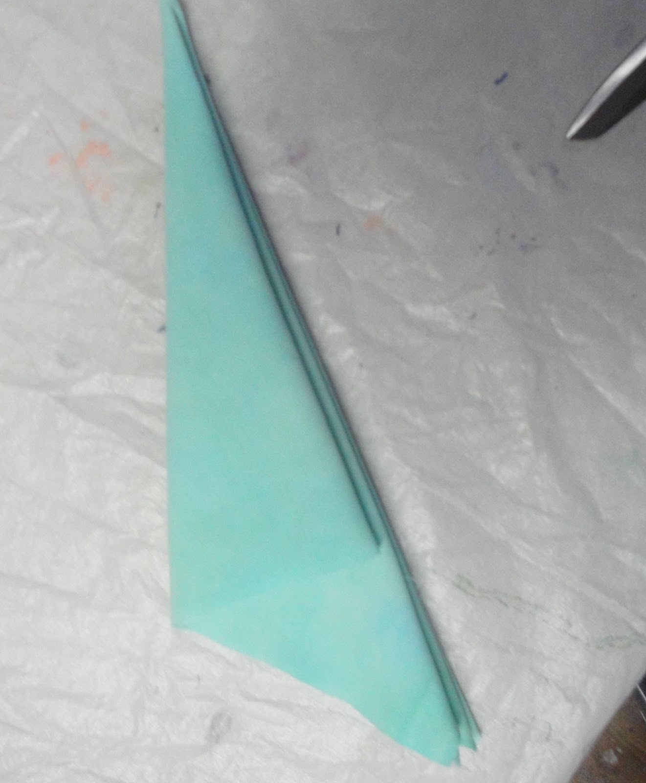 at this point, I sewed little tacks all along the long edge of the triangle and then bound it with more cotton thread.